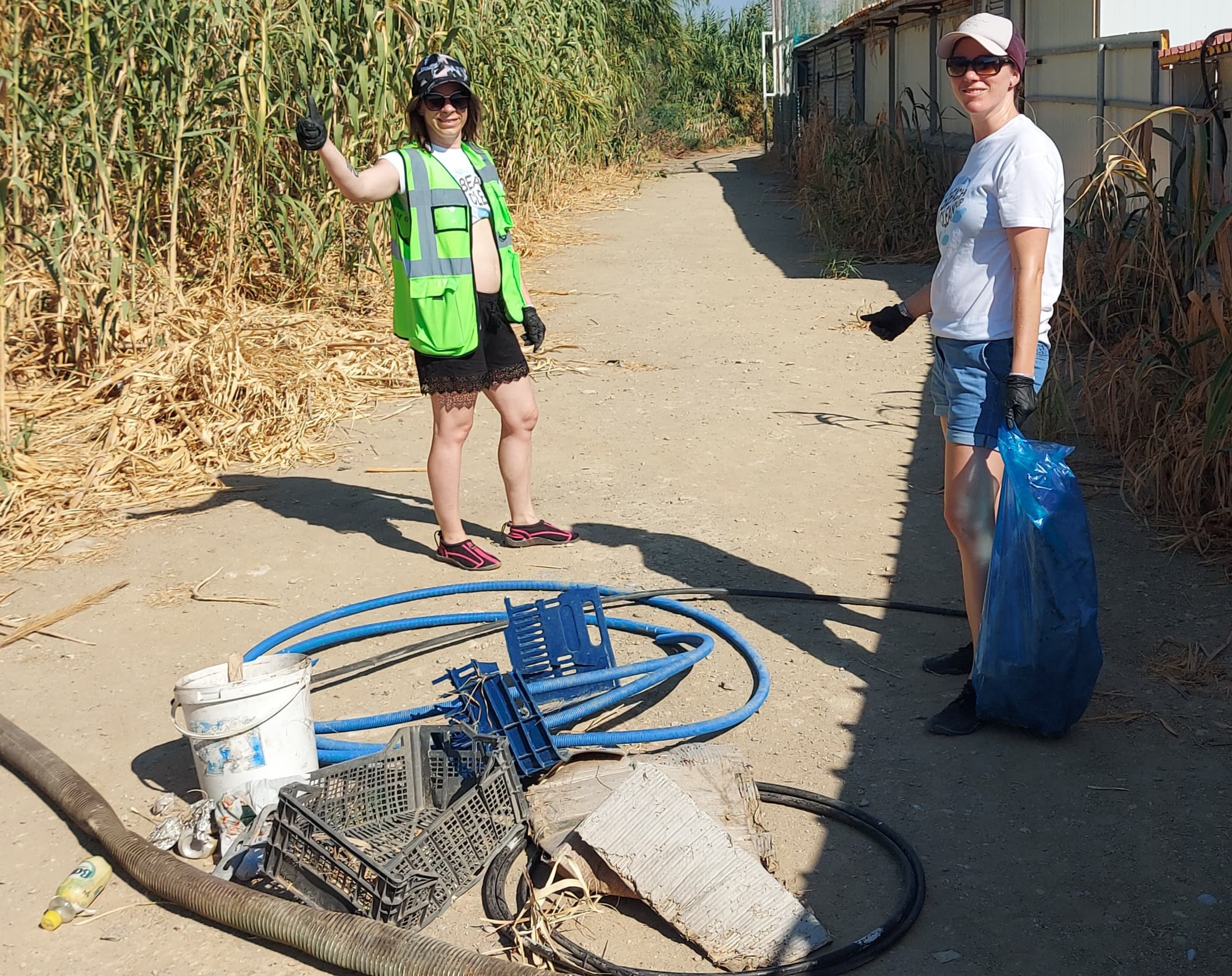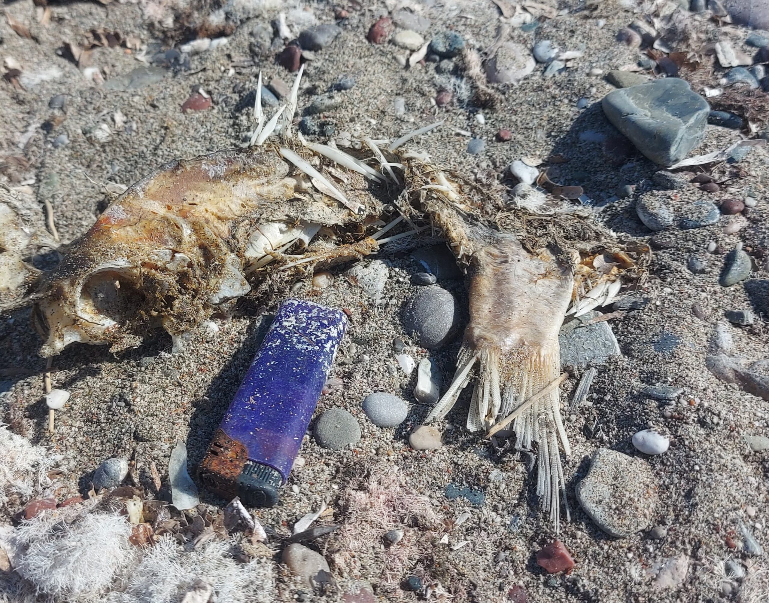 Besonders häufig haben wir Plastikflaschen und Getränkedosen entdeckt – davon allein zehn große Säcke voll. Außerdem kamen Plastikrohre, Metallteile, Schuhsohlen, Eisenstangen, Schnüre, Styroporstücke, Schläuche, Plastikkisten und Glasflaschen zusammen. Auch ein alter Gartenstuhl lag am Strand. Und wie fast immer: zahllose Kippenstummel und Plastikdeckel.