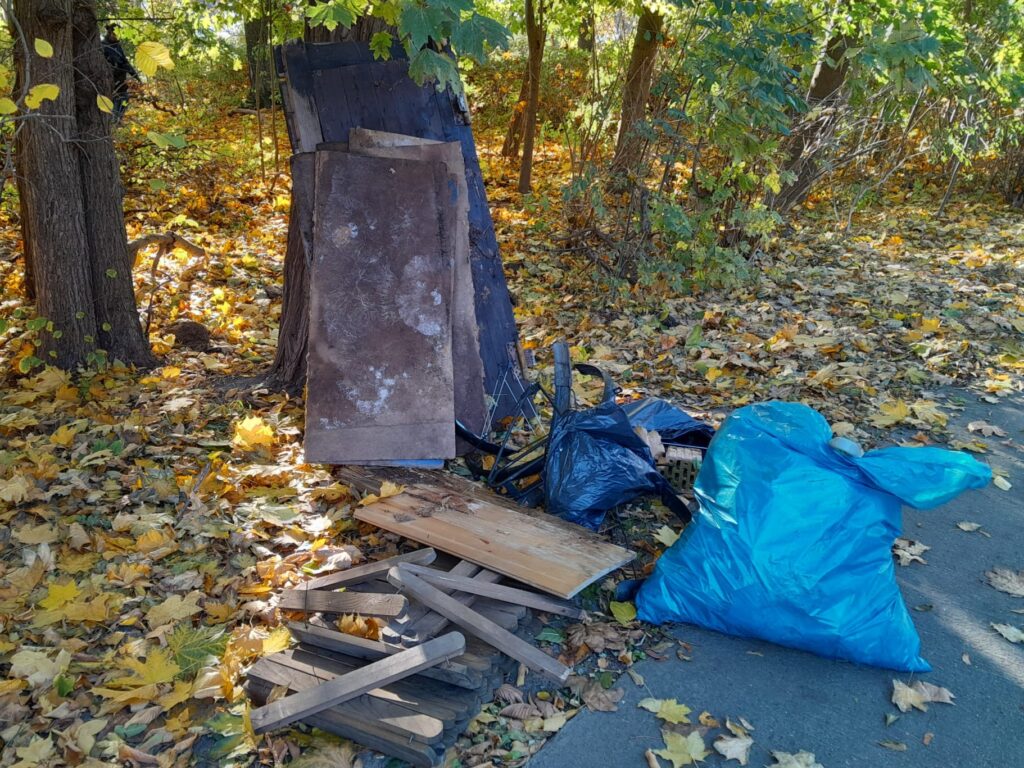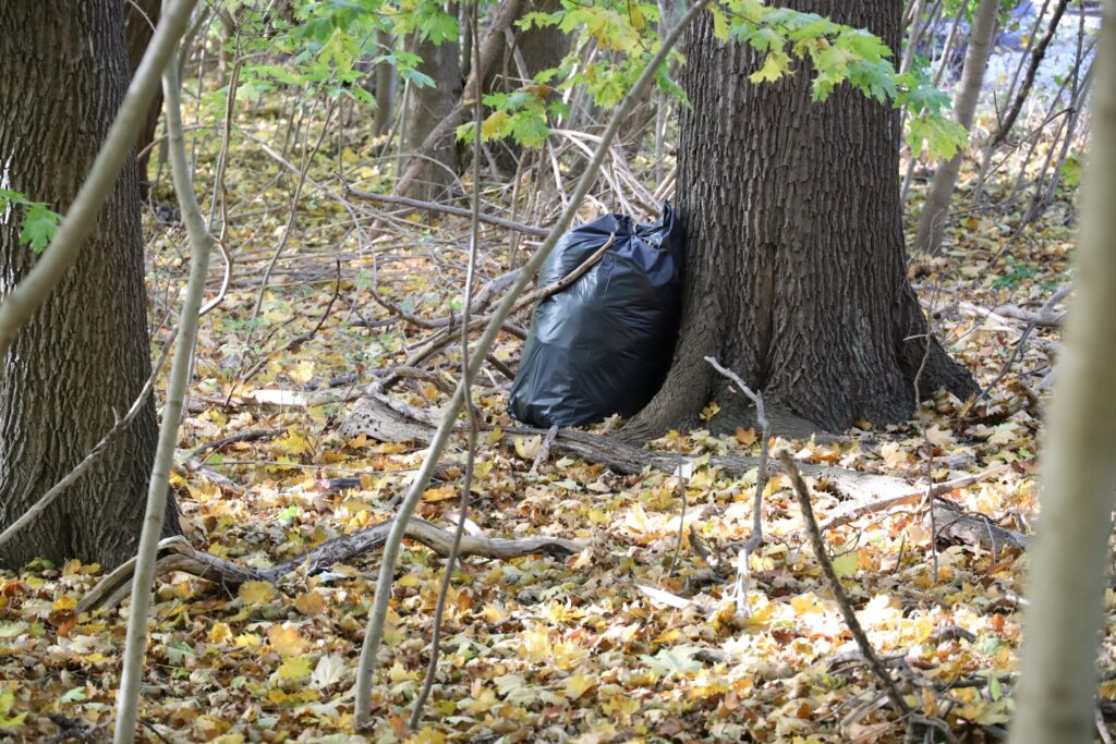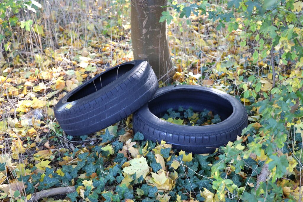 Wenn man sich unser Foto von heute anschaut, sieht man allerdings, wie viel anderer Müll illegal im Waldstück entsorgt wurde.