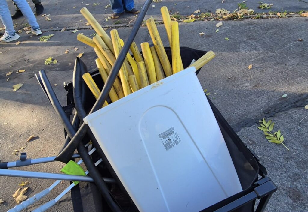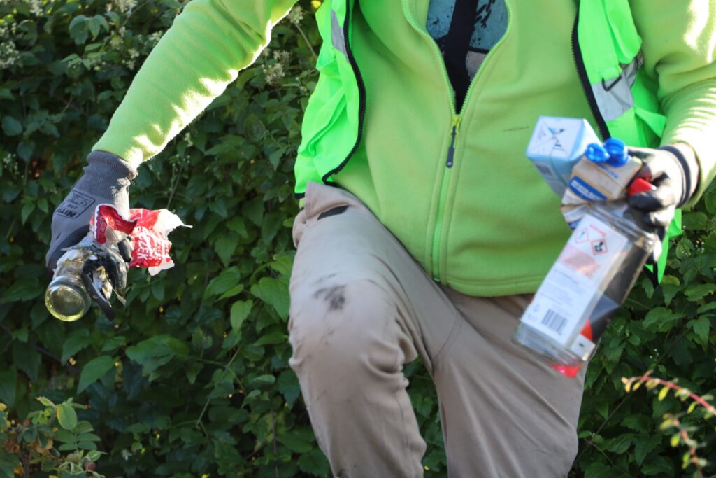 Damals fanden wir vor allem Verpackungen und Flaschen, die in die Grünanlage entlang der Bahnanlage vom Gehweg aus geweht oder rein geworfen wurden und bereits jahrelang dort lagen. Verpackungen und Glasflaschen fanden wir heute zwar auch, aber vergleichsweise wenig – was und sehr freut und zeigt, dass der damalige Einsatz positive Grundlage geschaffen hat.