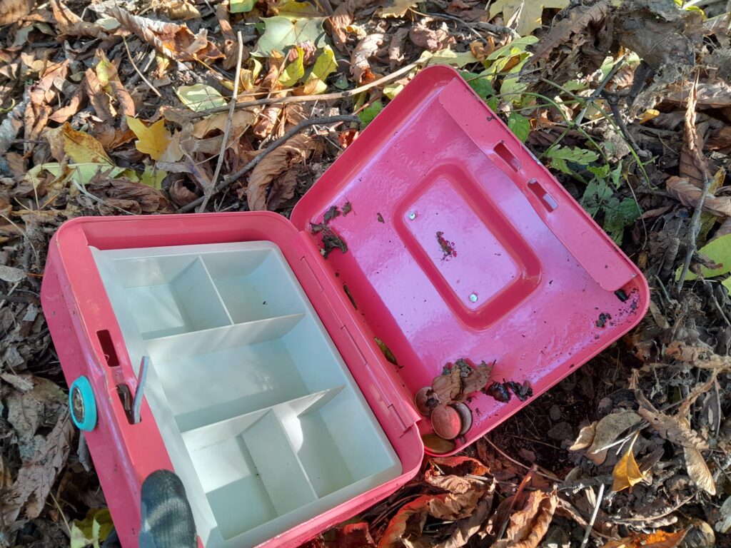Rings um die Geldkassette lagen verschiedene Fotos, ein Impfausweis sowie Bankauszüge. Wir werden versuchen, den Besitzer ausfindig zu machen und geben hier ein Update, ob es geklappt hat. Wir sind jedoch zuversichtlich, da wir in der Vergangenheit schon viele Dokumente, Geldbörsen u. ä. erfolgreich ihren Besitzern zurückbringen konnten.