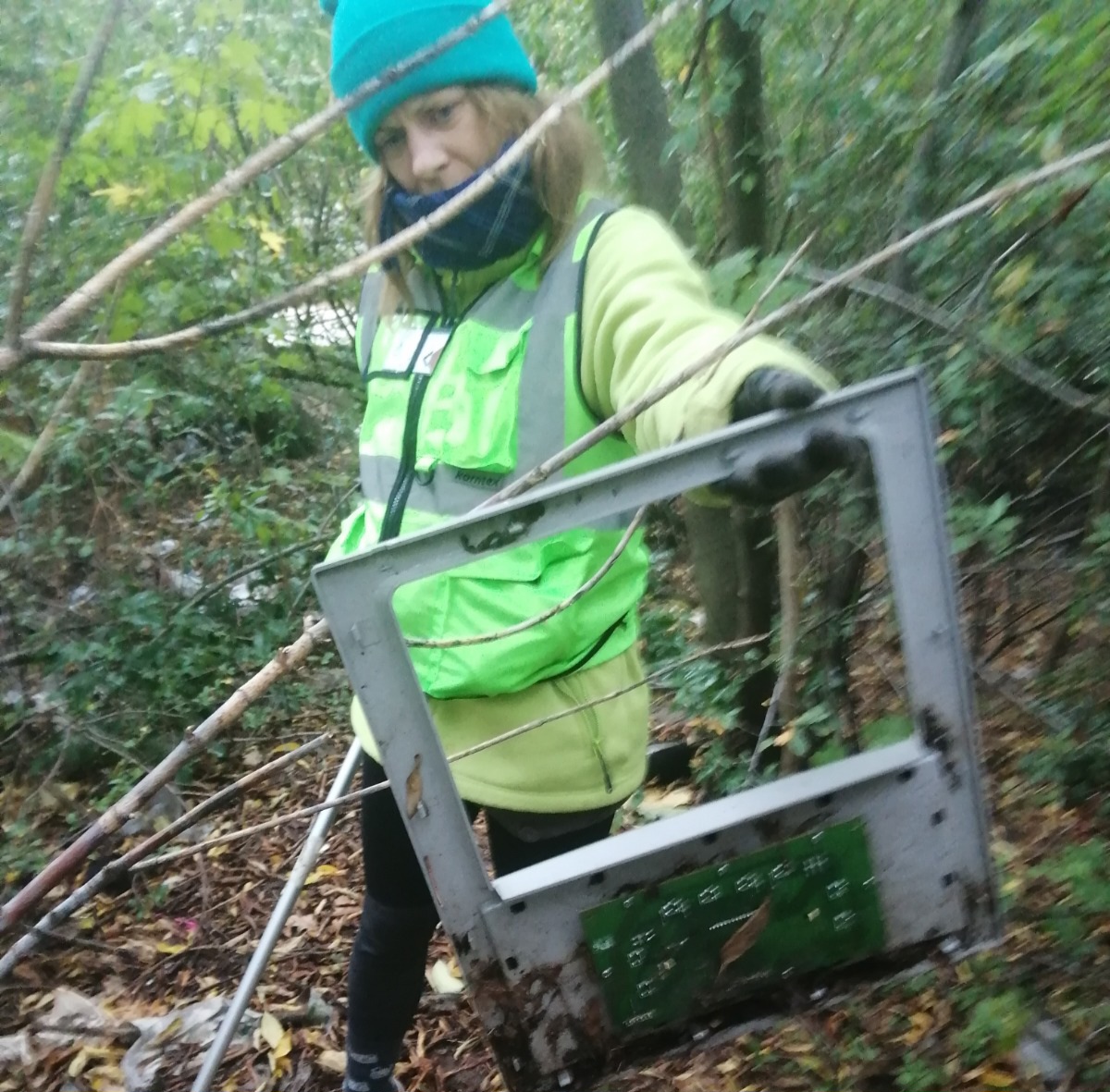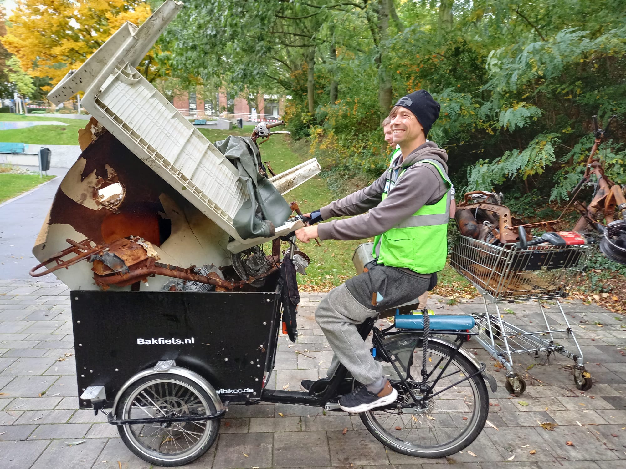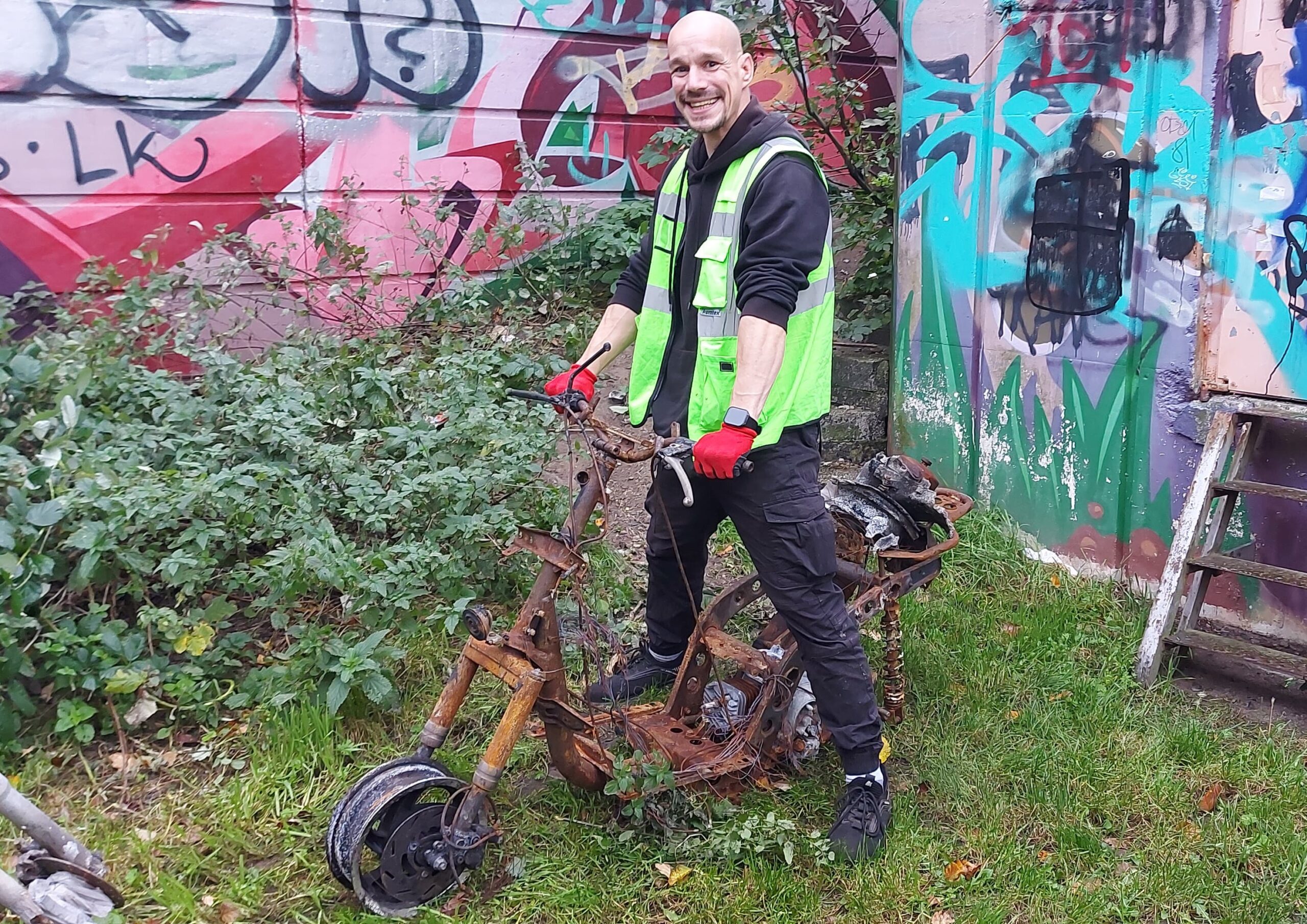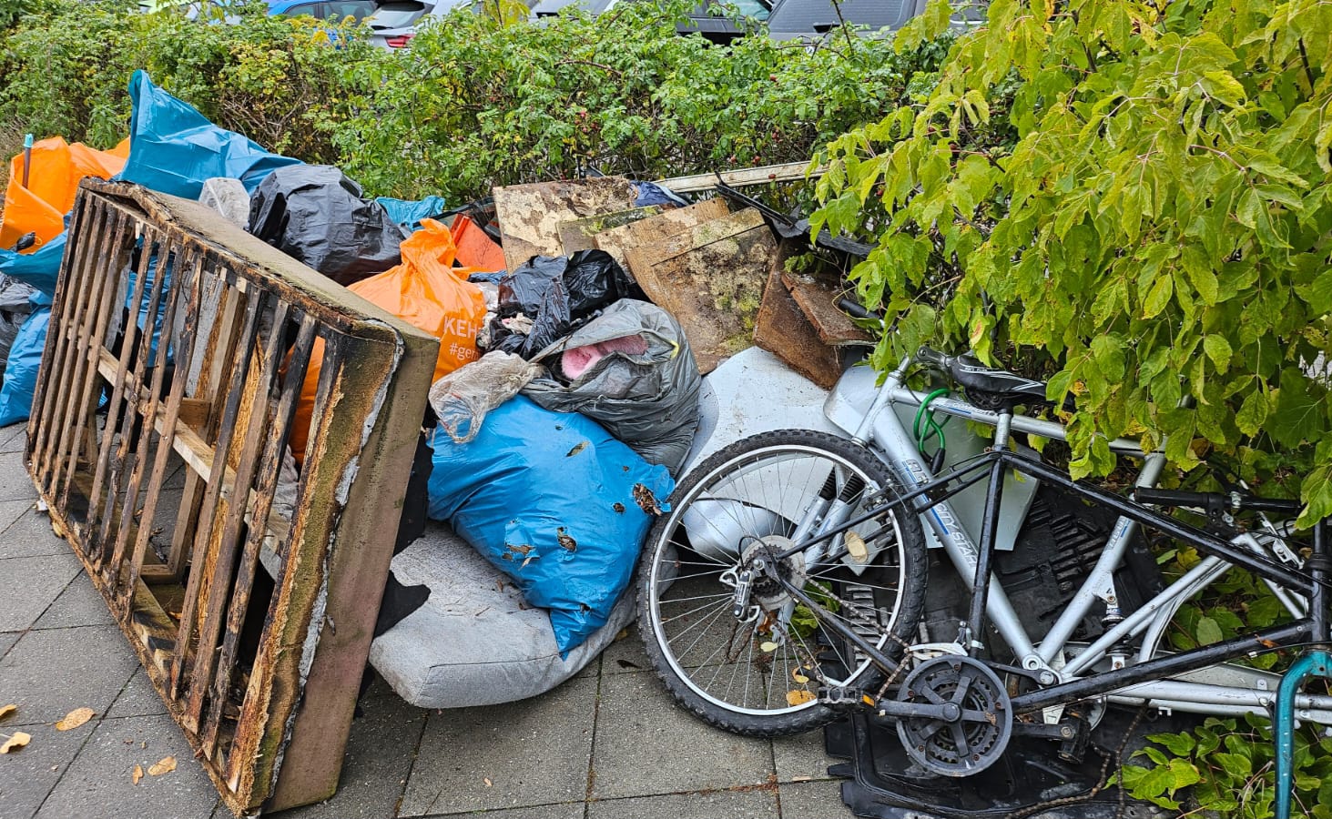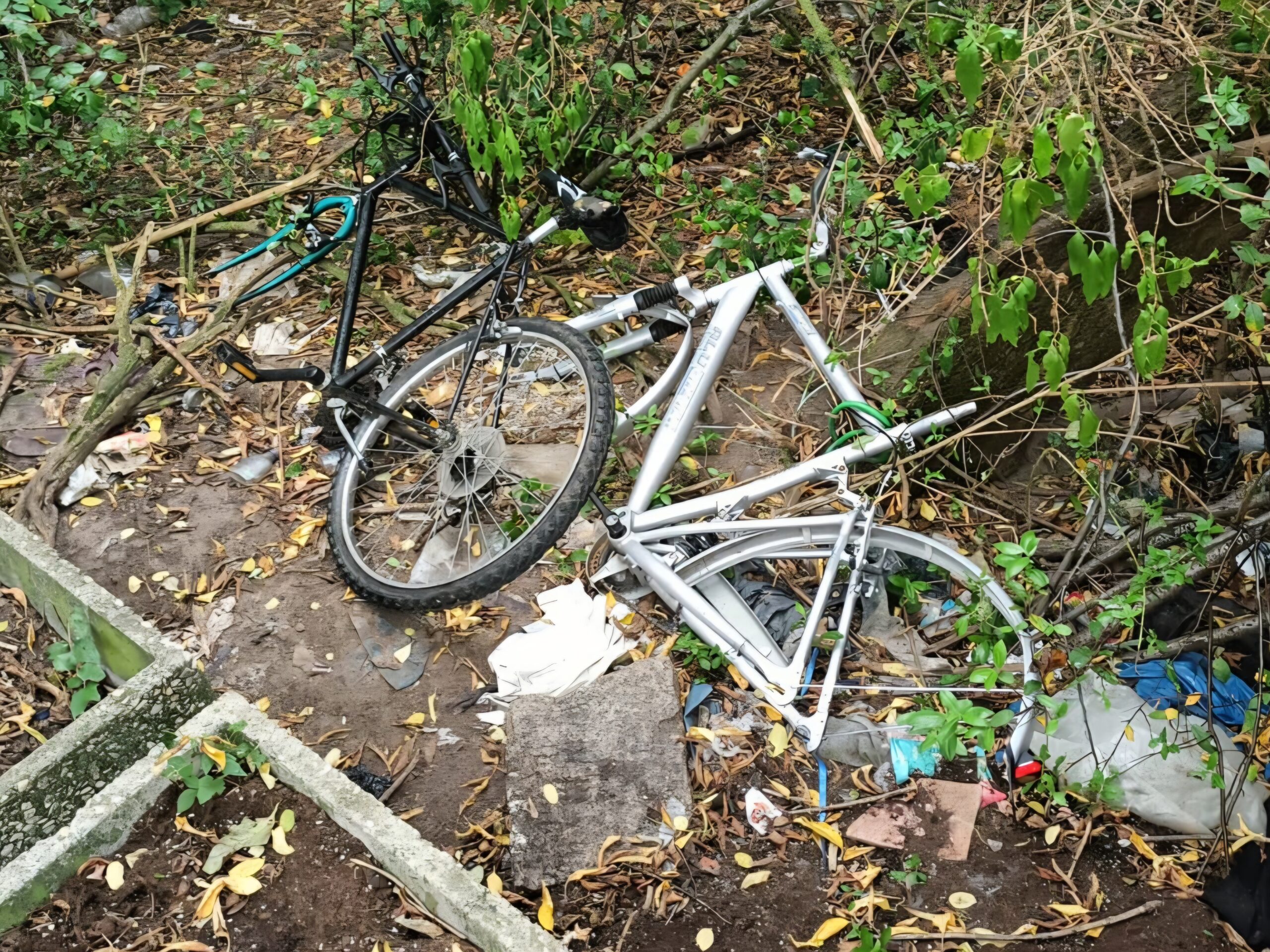 Bruchglas, Hundehalsband, Plastikbesteck, Sprühsahnedosen, Scheibenwischer, Holzbretter, Pappe, Powerbank-Anleitung, Flaschen, Staubsaugerteil, Elektroklappe, Turnschuh, Matratzenfedern, mehrere volle illegale Müllsäcke, Portemonnaie, aufgeschnittene Kabel, zwei ausgebrannte Motorroller, Bank, Bettkasten, Matratze, Autoteile, Reifen, unzählige Windeln, Spritzen, Insulinspritze, Fahrräder, Bauschutt, Klamotten, Bollerwagen, Stuhlbeine, Beton, Einkaufswagen, Wohnungstür – und noch vieles mehr.